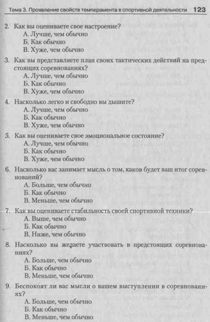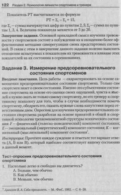 Задание 1. Измерение свойств темперамента спортсмена . . . 111 Задание 2. Измерение ситуативной тревожности спортсмена . 116 Задание 3. Измерение предсоревновательного состояния