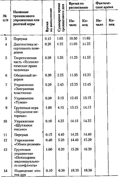 6. Создание консультационной группой идеальной модели нового по ведения. Группа может принять новую, более адекватную установку в отношений разбираемой ситуации и действующих в ней лиц и сформировать идеальную модель поведения в данной ситуации. Например, в ситуации просьбы важно не смешивать ее с ситуацией требования, необходимо отчетливо формулировать объем просьбы, учитывать возможности партнера и его интересы и т. д. Эту новую модель участники группы под руководством ведущего могут начать осваивать и вводить в свой поведенческий репертуар в процессе тренировочных упражнений.