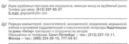 Представительствоиздательства«Питер», м. «Калужская», ул. Бутлерова, д. 176, оф. 207 и 240, тел./факс: (095) 777-54-67. E-mail: sales@piter.msk.ru