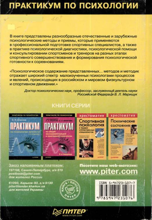 П69 Практикумпоспортивнойпсихологии / Подред. И. П. Волкова. — СПб.: Питер, 2002. — 288 с: ил. — (Серия«Практикумпопсихологии»).