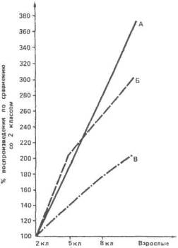 Шестой способ — таблицы., формулы и графики динамики и зависимостей психических явлений. Названный способ сам по себе широко известен и давно используется в физике, математике и других, особенно технических, науках. В психологии количественные характеристики, поддающиеся строгой математической обработке и выражению, начали широко применяться сравнительно недавно, по мере совершенствования методов исследования. К сожалению, многое из того, что уже может быть упорядочено и представлено в виде таблиц, графиков и формул, излагается во многих учебных пособиях описательно, с оговорками, вроде: возрастает-убывает, больше-меньше и т.д. В порядке иллюстрации экономичности и вместе с тем информационной насыщенности приведем лишь один г Рафик — изменения скорости сенсо-Моторной реакции при упражнении (с 92).
