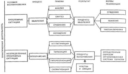 Рядом исследователей было установлено, что ведущее звено мыслительной деятельности составляет особая форма анализа — анализ через синтез. «Эта форма,— писал С.Л. Рубинштейн,— основная форма анализа, основной нерв процесса мышления — заключается в следующем: объект в процессе мышления включается во все новые связи и в силу этого выступает во все новых качествах, которые фиксируются в новых понятиях; из объекта, таким образом, как бы вычерпывается все новое содержание, он как бы поворачивается каждый раз другой своей стороной, в нем выявляются все новые свойства»1 .