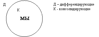 - образ «мы» – групповое самовыделение путем сравнения по таким отличительным признакам как внешность, язык или обычаи.