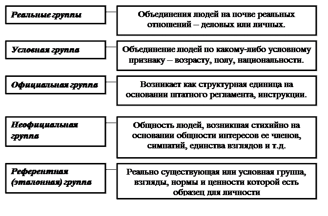 Группы бывают большие и малые, реальные и условные, официальные и неофициальные и референтные.