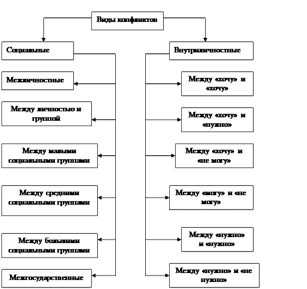 Межличностные конфликты представляют собой столкновения интересов двух людей или интересов личности и группы. Средние социальные группы по количественному составу занимают промежуточное положение между малыми и большими. Если количество участников конфликта превышает несколько сотен человек, то это конфликт между большими социальными группами.