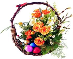 Дарить однотонные цветочные композиции на Пасху совершенно необязательно, приветствуется и многоцветие; радостные, яркие, весёлые цветочные композиции полностью соответствуют настроению праздника.