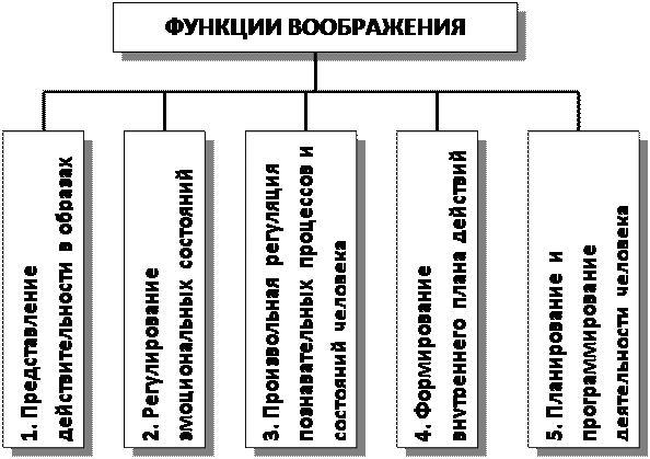 В процессе жизнедеятельности человека воображение выполняет ряд специфических функций (рис.2), первая из которых состоит в том, чтобы представлять действительность в образах и иметь возможность пользоваться ими, решая задачи. Эта функция воображения связана с мышлением и органически в него включена.