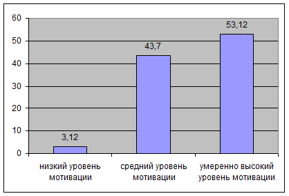 Умеренно высокий уровень мотивации зафиксирован у 53,12% респондентов.