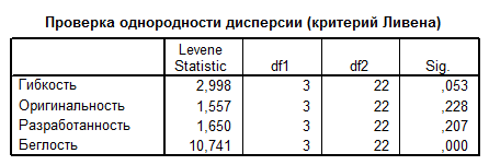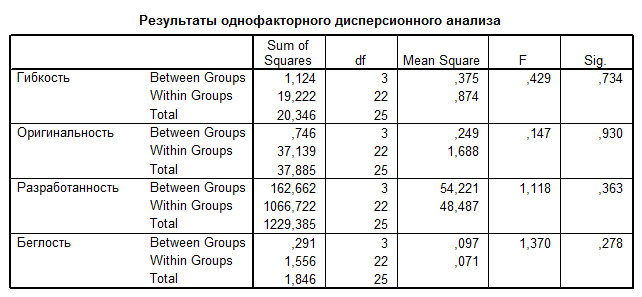 - Однородный дисперсионный анализ, с использованием статистического пакет SPSS 11.0