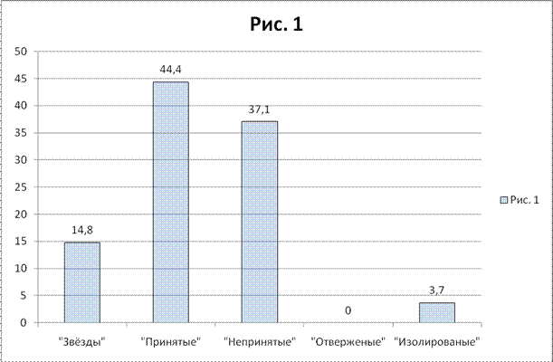 Рис.1Диаграмма по уровням статусного положения в группе (в процентах)