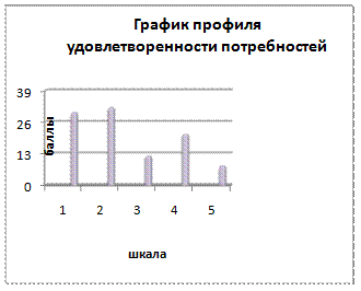 Завершающей процедурой является построение профиля удовлетворенности по пяти шкалам. Для этого откладываем полученные суммы на каждой шкале. На графике указаны три зоны: