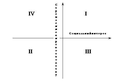 IV – псевдокомпенсация. У этих людей есть стремление к превосходству, но социальный интерес варьируется от 0 до какой-то неизвестной отрицательной величины. Псевдокомпенсирующиеся – это те люди, которые стремятся к превосходству, но по каким-то причинам не могут идти по пути прямой борьбы с трудностями, а посему выбирают пути окольные.