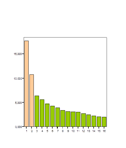 С помощью выше описанной процедуры были выявлены универсальные факторы - категории, всего 16, объясняющие 76,4 % распределения.