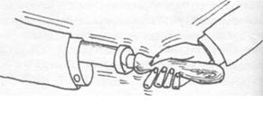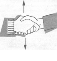 Инициатор рукопожатия хватает руку собеседника и начинает энергично и ритмично трясти ее в вертикальном направлении.