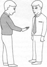 Если вы обращаетесь к человеку, равному вам по статусу, то просьбе, высказанной при положении руки ладонью вниз, он может воспротивиться. Более охотно он откликнется на ваше предложение, если вы выскажете его, повернув руку ладонью вверх. При обращении же к подчиненному рука, повернутая ладонью вниз, будет выглядеть вполне уместно, поскольку ваше положение это позволяет.