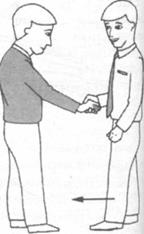 Сделайте шаг вперед правой ногой и поверните руку собеседника ладонью вверх