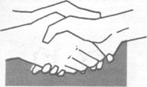 Когда встречаются два энергичных, властных человека, рукопожатие превращается в своеобразную силовую игру. Каждый стремится перевести руку собеседника в подчиненное положение. В результате обе руки остаются в вертикальном положении, что сразу же создает атмосферу равенства и взаимного уважения. В таких обстоятельствах собеседники не уступают друг другу.