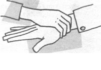 Подобный прием позволит вам взять контроль над ситуацией и упростит дальнейшее общение. Кроме того, рукопожатие двумя руками очень удобно для женщин. Если вы чувствуете, что собеседник намеренно стремится вас запугать и делает это постоянно, возьмите его руку сверху, а затем пожмите ее (см. рисунок). Это может буквально сразить вашего собеседника, поэтому мы не советуем прибегать к такому приему часто. Рассматривайте его как своеобразную «скорую помощь», последний выход.