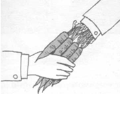 Подобное рукопожатие зародилось в Нидерландах, где его сравнивали с пучком моркови. Чем-то оно напоминает «дохлую рыбу», но несколько крепче и не столь липкое.