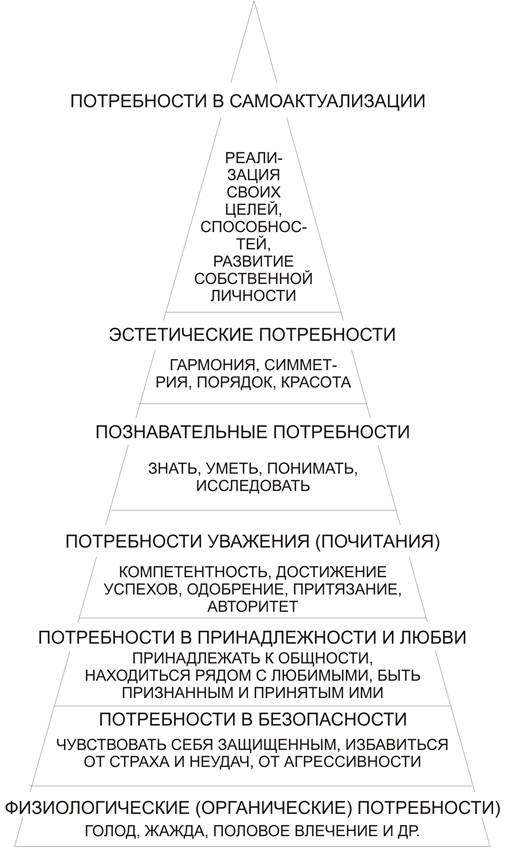 Пирамида (иерархия) человеческих потребностей (по Маслоу):