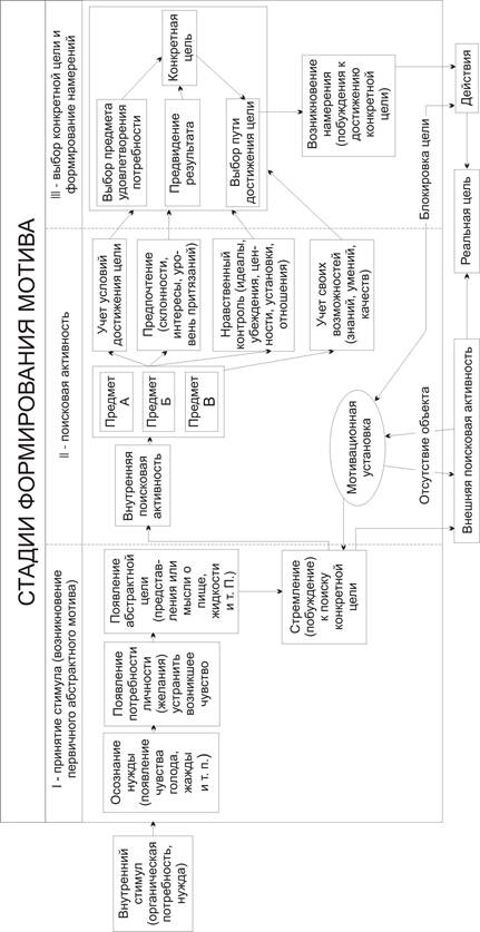 Первый этап – формирование первичного (абстрактного) мотива. Он состоит из формирования потребности личности и побуждения к поисковой активности.