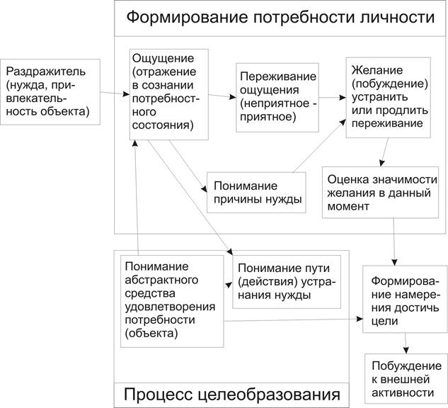 Схема, отражающая параллельное формирование потребности и цели в процессе укороченной мотивации: