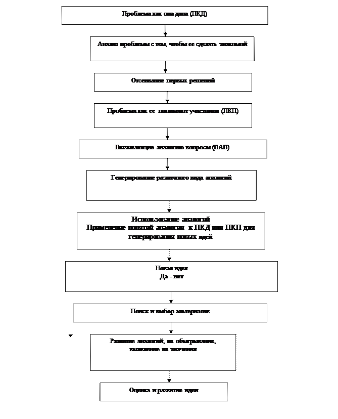 В реальной практике проведения синектического штурма на совещании участники, как правило, стремятся немедленно, без соблюдения всех перечисленных синектических процедур найти решение проблемы(Приложение 2)