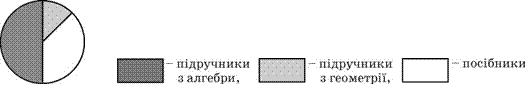 3. У кабінеті математики 50% всіх книг – підручники з алгебри, 25% решти книг – підручники з геометрії, а інші книги – посібники з підготовки до ЗНО. Укажіть, на якій із діаграм правильно показано розподіл книг.