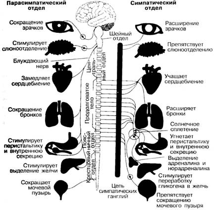 Подразделение нервной системы, включающее симпатическую иервиую систему и парасимпатическую иервиую систему. Многие функции АНС являются саморегулирующимися и не находятся под осознанным контролем организма. Основной центр управления автономной нервной системы находится в гипоталамусе. АНС контролирует различные железы, деятельность сердечной мышцы и сокращение кишечника (см. диаграмму на с. 11).