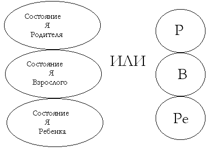 Человек в социальной группе в каждый момент времени обнаруживает одно из состояний Я - Родителя, Взрослого или Ребенка. Люди с разной степенью готовности могут переходить из одного состояния в другое. Описать эти состояния можно так: