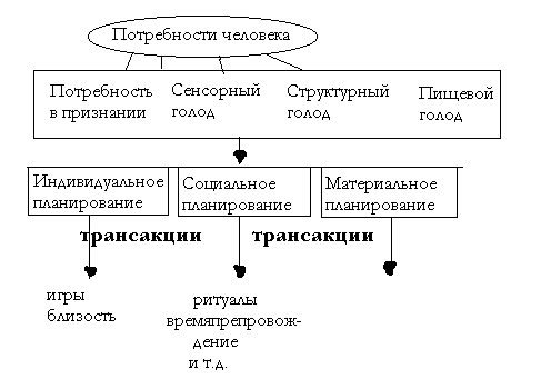 Э.Берн считает, что одна из функций жизни в обществе состоит в том, чтобы оказывать друг другу взаимопомощь и в этом вопросе. Операциональный аспект процесса структурирования времени можно назвать планированием. Оно имеет три стороны: материальную, социальную и индивидуальную.