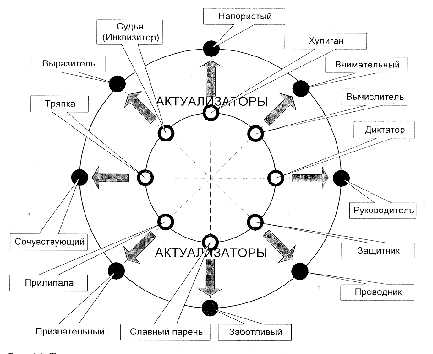 По теории Шострема – Маслоу и манипуляторы, и актуализаторы образуют несколько психологических типов, которые представлены на схеме рис. 4.1 [1]. Практически каждый тип имеет своего антагониста, который отмечен на диаграмме в диаметрально противоположной позиции. Поэтому описывать их будем парами. Рассмотрим сначала типы манипуляторов.