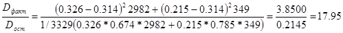где D факт и D ост – факторная и остаточная дисперсии на одну степень свободы.