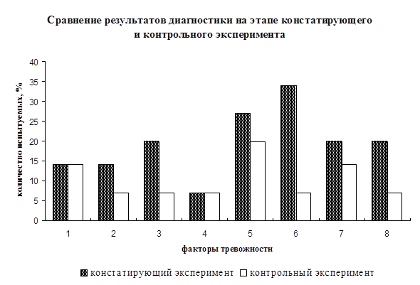 - констатирующий и контрольный эксперименты, направленные на выявление уровня тревожности, а также фиксацию результатов, достигнутых после проведения коррекционно-развивающих занятий;
