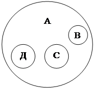 Таким образом, объемы трех понятий В, С, и Д произвольным образом включаются в объем четвертого, более широкого понятия А.