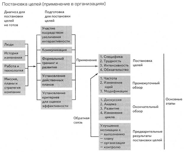 В соответствующих условиях постановка целей способна стать мощным средством мотивации сотрудников. Если ее правильно применяют, тщательно контролируют, и она пользуется поддержкой менеджеров, ее использование может повысить результативность работы. (Трудность цели и согласие с ней — таковы два момента, которые должны учитывать менеджеры.) Менеджеры должны сознавать, что постановка целей и стремление добиться конкретных и относительно трудных целей могут стать мощной побудительной силой.