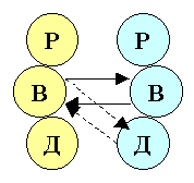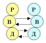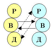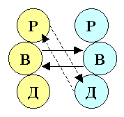 «Транзактный анализ - направление, предлагающее регулирование действий участников взаимодействия через регулирование их позиций, а также учет характера ситуаций и стиля взаимодействия. С точки зрения транзактного анализа каждый участник взаимодействия в принципе может занимать одну из трех позиций, которые условно можно обозначить как Родитель, Взрослый, Ребенок. Эти позиции ни в коей мере не связаны обязательно с соответствующей социальной ролью: это лишь чисто психологическое описание определенной стратегии во взаимодействии (позиция Ребенка может быть определена как позиция «Хочу!», позиция Родителя как «Надо!», позиция Взрослого - объединение «Хочу» и «Надо»). Взаимодействие эффективно тогда, когда транзакции носят «дополнительный» характер, т.е. совпадают: если партнер обращается к другому как Взрослый, то и тот отвечает с такой же позиции. Если же один из участников взаимодействия адресуется к другому с позиции Взрослого, а тот отвечает ему с позиции Родителя, то взаимодействие нарушается и может вообще прекратиться. В данном случае транзакции являются «пересекающимися».