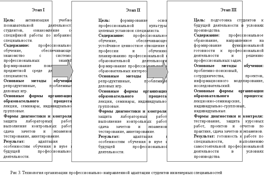 По результатам моделирования нами была разработана и реализована технология организации профессионально-направленной адаптации будущих специалистов (рис.3). .