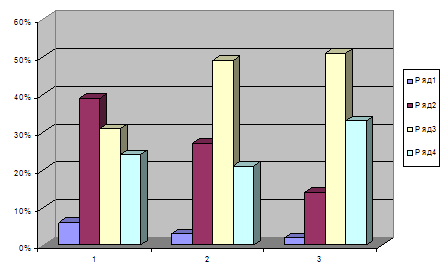 На третьем этапе (обобщающего эксперимента) были проанализированы и систематизированы полученные результаты с целью корректировки методики и выработки научно-методических рекомендаций по повышению эффективности процесса профессионально-направленной адаптации студентов к условиям технического университета. Проверка эффективности методики обучения студентов дисциплинам «Оптимизация учебно-познавательной деятельности» и «Введение в специальность» позволяет проследить динамику профессионально-направленной адаптации первокурсников (рис.4).