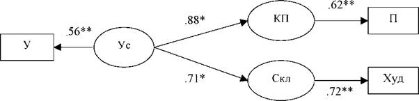 Примечания: Латентные факторы: Ус — учебная успеваемость, КП — культурные потенциалы, Скл