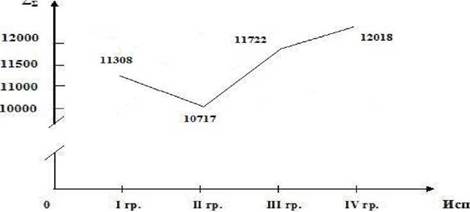 В результате этого нами были подсчитаны суммарные показатели по всем проведенным методикам для каждой из четырех групп испытуемых. Полученные результаты представлены на рисунке 1.