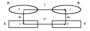компьютерная реализация обработки - представляет конкретную реализацию f*:X®Y математической функции f в зависимости от компьютерного и программного оборудования на базе подходящего физического представления реальных информационных объектов.