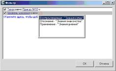 | TestQuery | Tema=0 and Gamma=1 | Строка, определяющая фильтр, по которому будут выбираться вопросы для данного теста (см. следующую таблицу). |