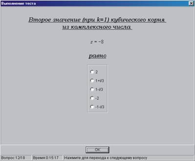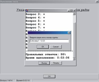 При необходимости, переход от одного вопроса к другому совершается посредством «результативного» окна, в котором дается информация о правильности ответа.