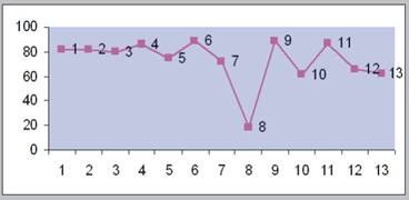 В тесте «Числовые ряды» наибольшую трудность вызвало тестовое задание № 8 (как видно из графика на Рис. 7).