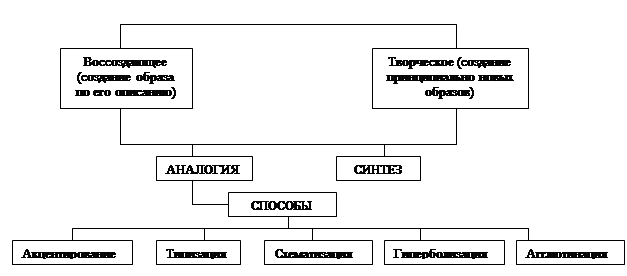 Основой создания любых образов фантазии является синтез и аналогия. Аналогия может быть близкой, непосредственной и отдаленной, ступенчатой. Например, внешний вид самолета напоминает парящую птицу. Это близкая аналогия. Космический корабль – отдаленная с морским кораблем. На использовании синтеза, аналогий и способов построения образов воображения строятся многочисленные приемы диагностики воображения и его развития.