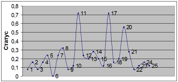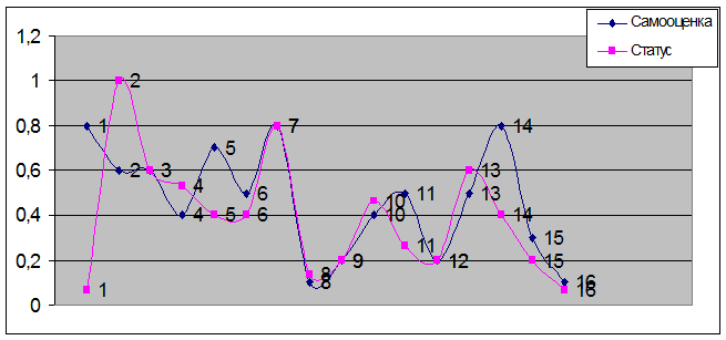 При сопоставлении полученных показателей мы получили следующую картину соотнесения статуса объекта и уровня его самооценки. Группа А.