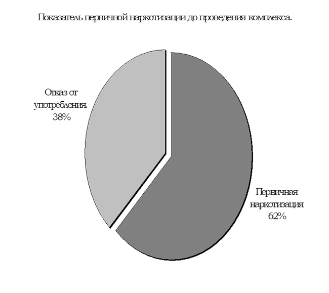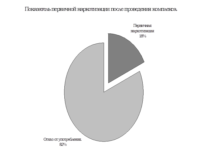 Уровень первичной наркотизации составил 18 % , что свидетельствует об эффективности проведенной работы.