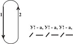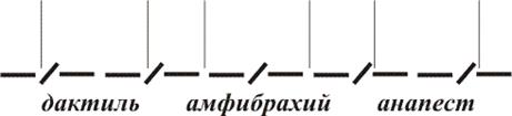 Там, не отвлекаясь от своего основного занятия, он, тем не менее, почувствует: безударный толчок от колеса 3, ударный от колеса 1 и вновь безударный от колеса 2. Этот более сложный фрикционный ритм называется амфибрахием: