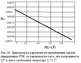 1. Разработанная в работе математическая модель алгоритма поиска и обнаружения целей прицельного радиоэлектронного комплекса и методика ее построения дает возможность получить значение его показателей эффективности для заданных проектировщиком функциональных и надежностных параметров радиоэлектронных систем при неточностях получения целеуказания, разных уровнях квалификации оператора. Вместе с этим модель разрешает определить влияние на показатели эффективности радиоэлектронных комплексов последовательности использования радиоэлектронных систем при выполнении задачи.